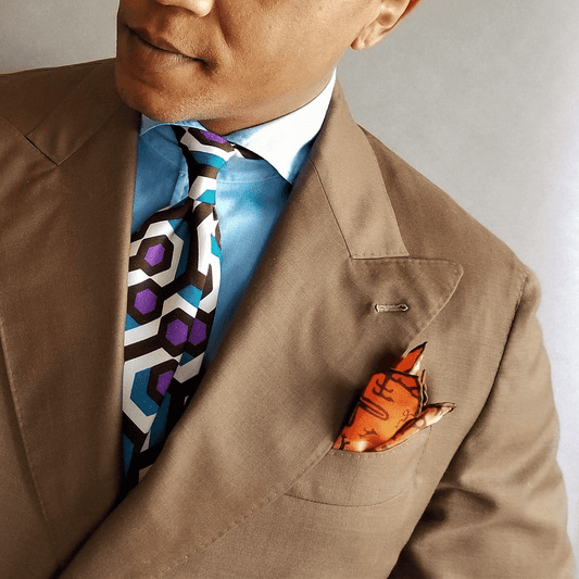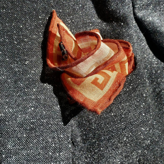 Minotaur Greek Key Print Pocket Square - Orange
