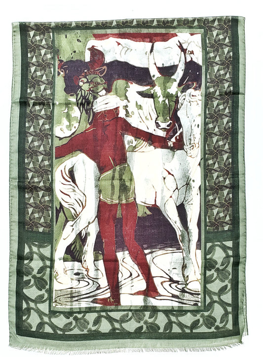 Outlaw Cowboy Print Scarves - Made in Italy - Moss Green