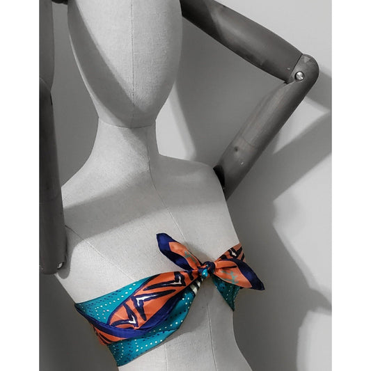 Aborigine Art Print Silk Twill Carré Scarf - Melon Blue