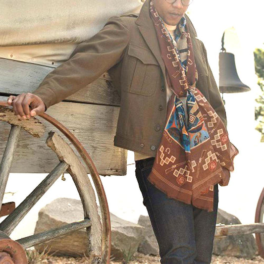 Western Navajo Print - Square Silk Scarf - Burgundy Brown